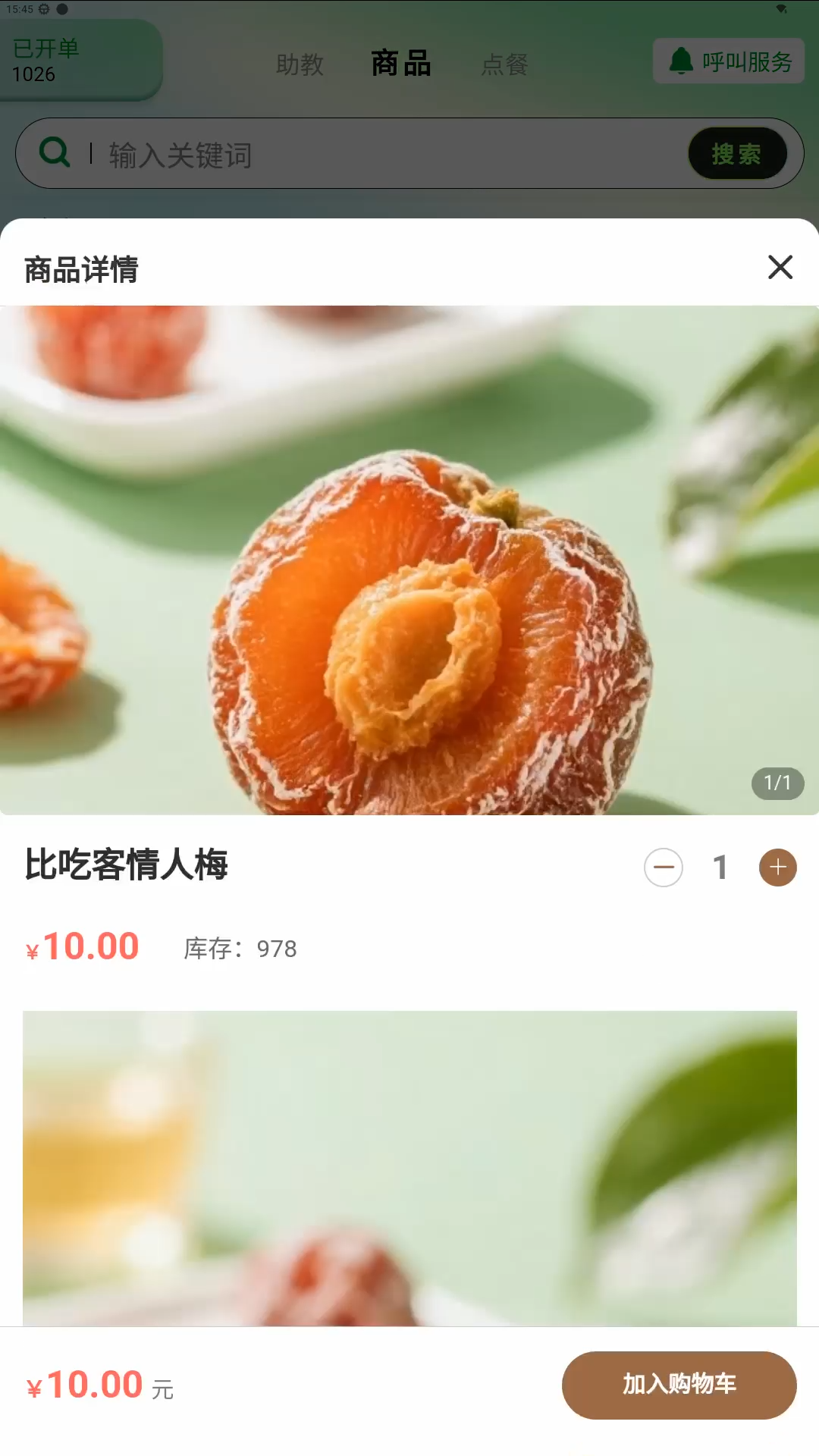 页面会展示所有商品的信息,用户可以选择有库存的商品进行加购、下单操作